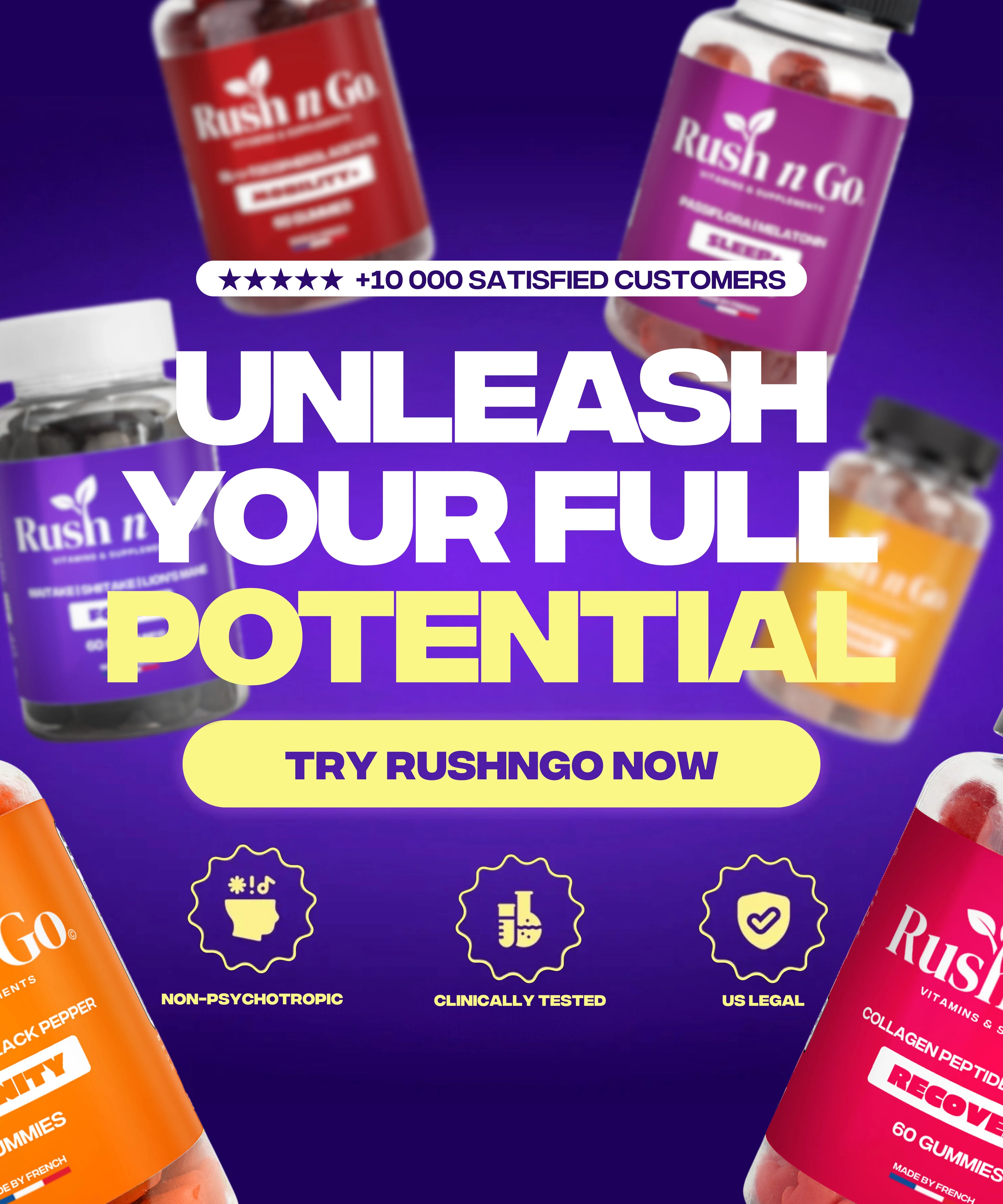 These categories are distinct and should not be confused. At RUSHnGO, we only offer safe, natural products that are recognized for their health benefits, without any adverse effects or alteration of mental state.
